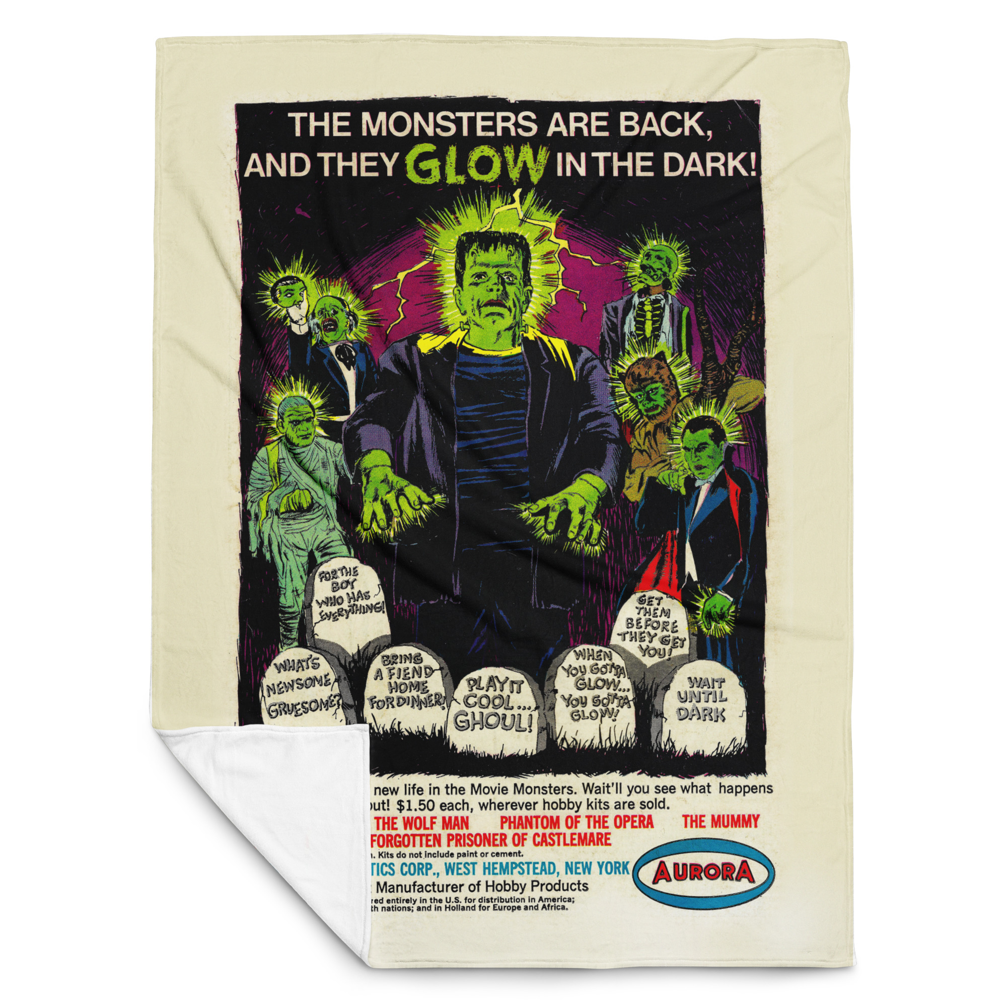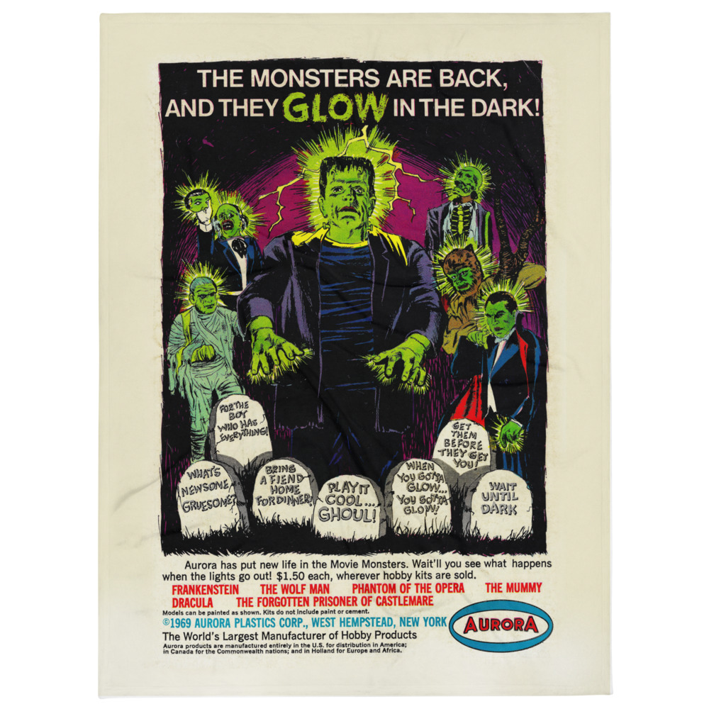 60x80 Aurora GLOW Monsters 1969 Comic Book Ad Throw Blanket